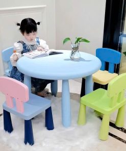 - Bàn ghế có nhiều màu sắc tươi sáng như xanh dương, xanh lá, vàng, đỏ, hồng… kết hợp với các họa tiết hoạt hình đáng yêu (tùy mẫu mã cụ thể), giúp kích thích thị giác, tạo hứng thú và niềm vui cho bé khi học tập và vui chơi.